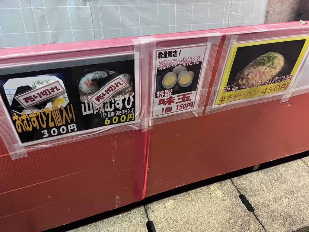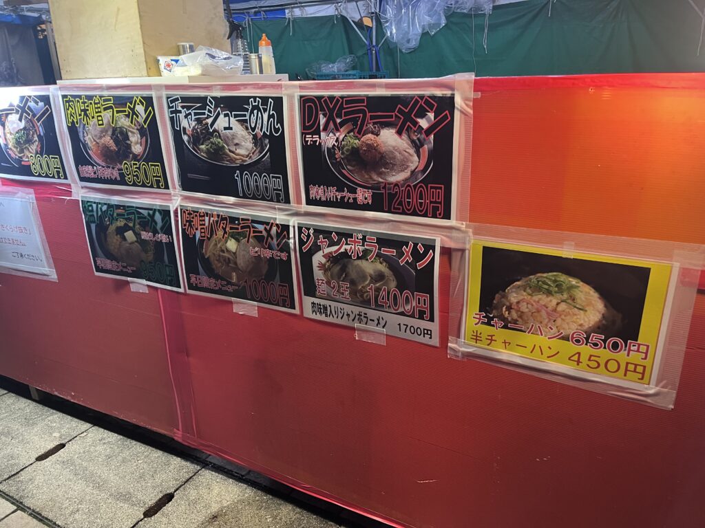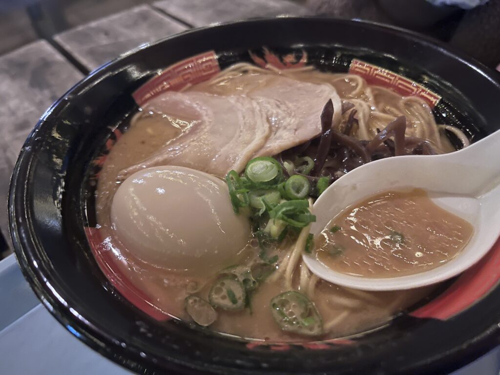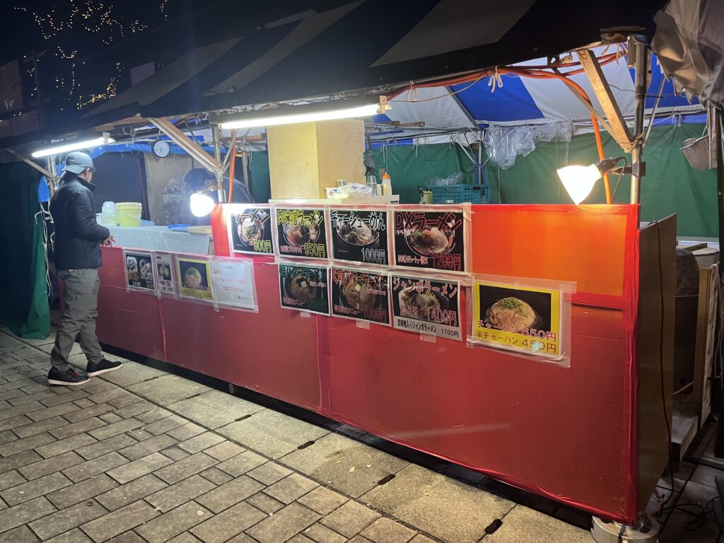 体の中から温まる豚骨醤油のラーメンは屋台の中でも人気メニュー。
