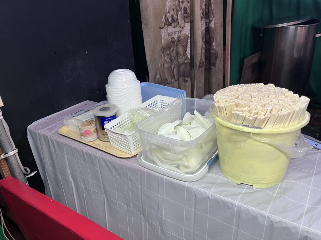 中の広場より少し落ち着いた雰囲気で、タープの下でゆっくりと食べられます。